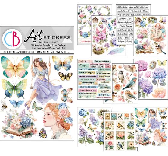 Ontdek de Art Stickers "Daydreams". Deze stickervellen zijn bedrukt met lentemotieven zoals vlinders, veren en bloemen. Met 10 vellen vol inspirerende ontwerpen bieden ze je talloze mogelijkheden om je scrapbooking lay-outs, junk journals of handgemaakte kaarten te versieren.