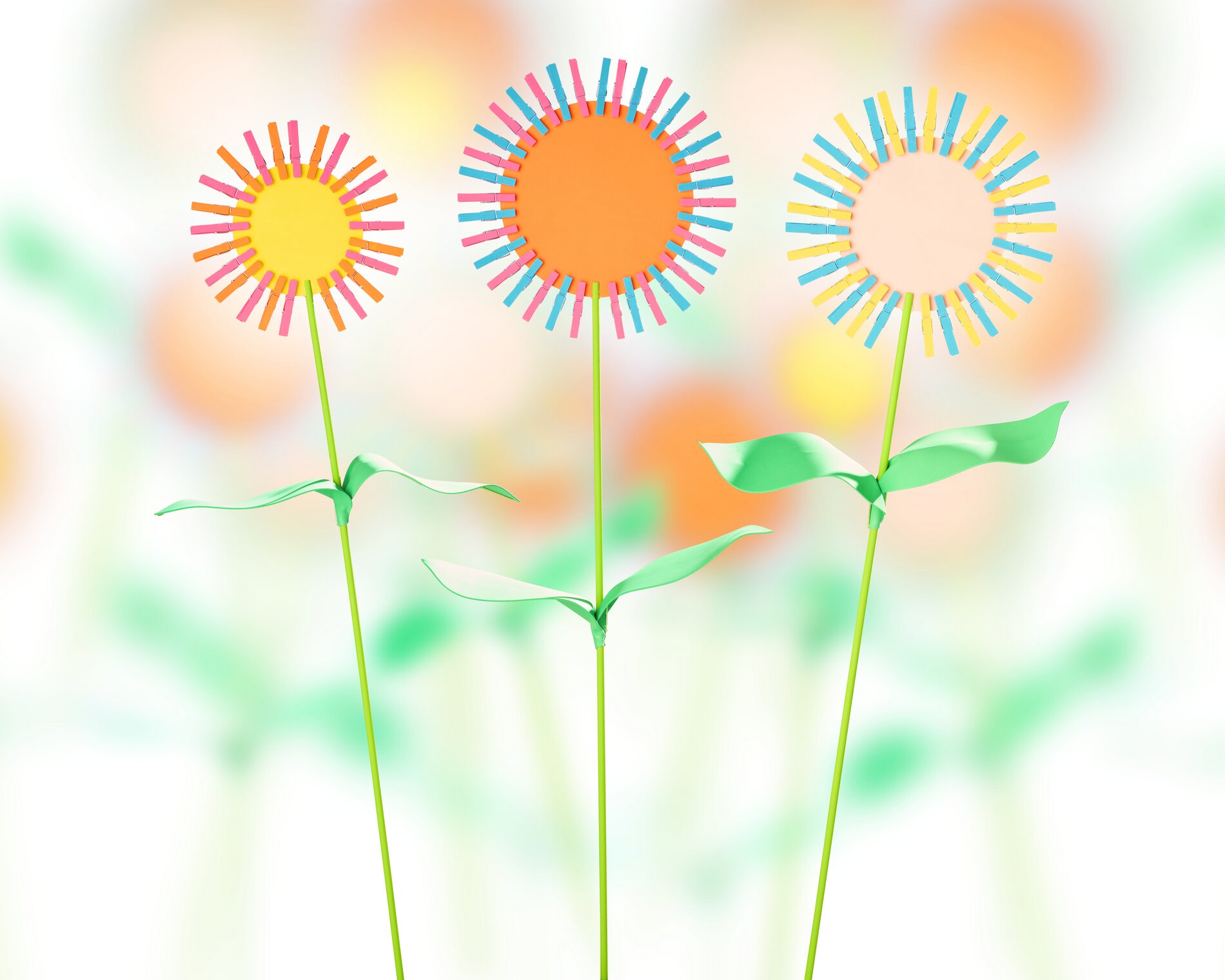 Bloemen gemaakt van houten wasknijpers