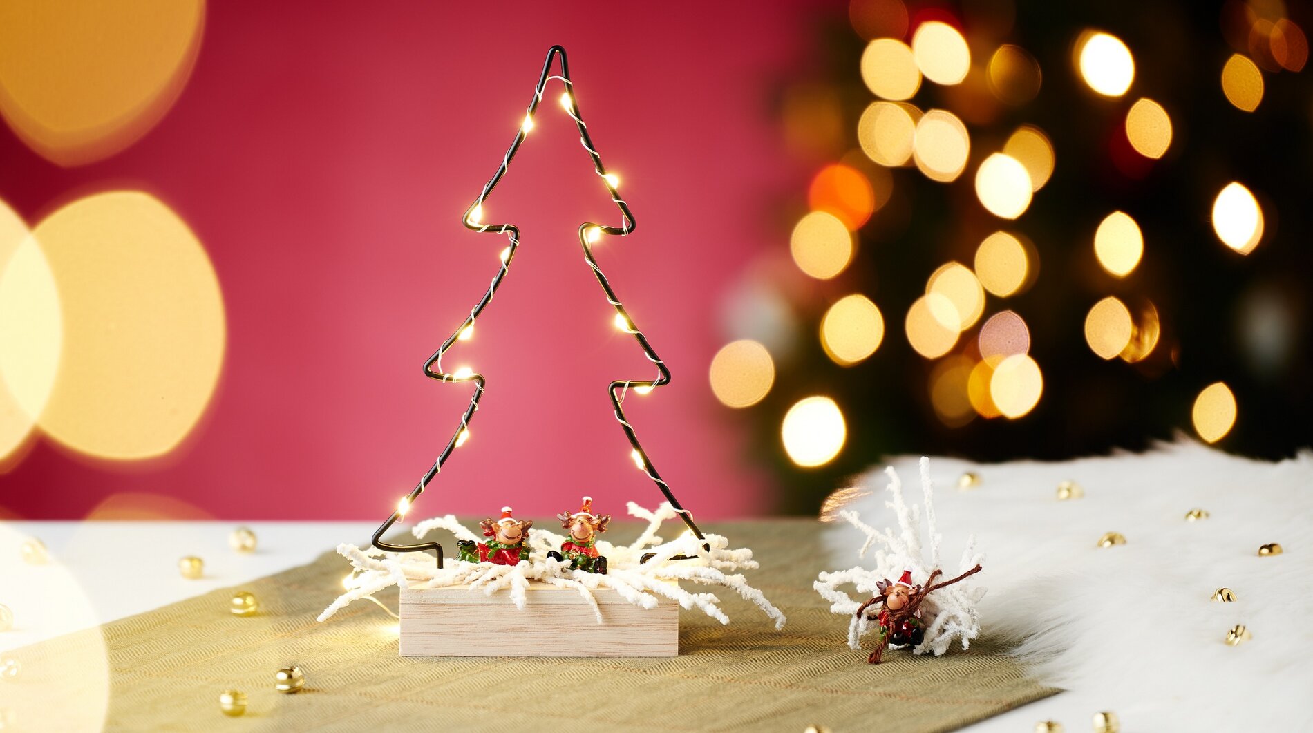 Voor dat extra detail in je winterwonderland plaats je strategisch twee geselecteerde figuurtjes tussen de takken. Zorg ervoor dat ze goed zichtbaar en stevig vastzitten. Maak ze ook vast met hete lijm. De figuurtjes geven je kerstboom een persoonlijk tintje en brengen het tafereel tot leven.