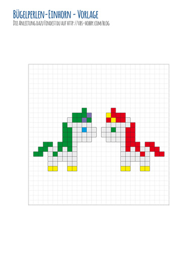 Mit Hilfe der Vorlage könnt ihr euch die Einhörner entweder in den gleichen oder komplett eigenen Farbkombinationen nachsetzen. Mit Hilfe eines Zahnstochers lassen sich die einzelnen Perlen auch besser herauspicken und auf der Platte ablegen.