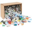 The Broken mosaic in the XXL package with 2 kg content is a colorful mix of colors with many different broken pieces of glass with rounded edges. The size of the fragments is about 8-20 mm, the thickness is about 2-3 mm.