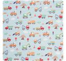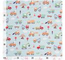Discover the world of construction vehicles! With our Cotton fabric "Construction vehicles", you can give free rein to your creativity and design unique projects. The light blue background forms the perfect backdrop for the detailed motifs of excavators, crane trucks and mixers, which shine in bright colors in digital print.