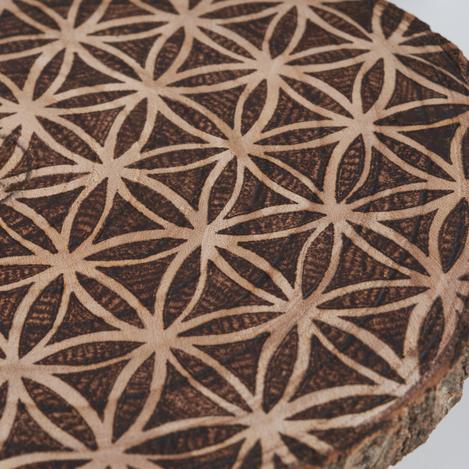 Place the stencil on the decorative wood panel with bark and trace the desired motifs with a pencil. Choose a suitable wooden burning pen accessoires and screw it into the branding iron. During heating, always place the flask on the stand to protect sensitive surfaces.