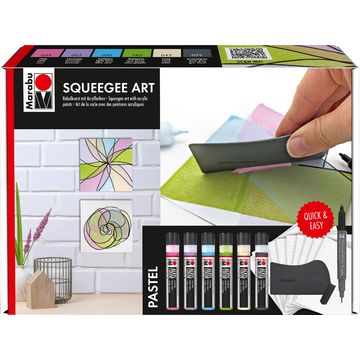Discover the fascinating world of squeegee art with the Marabu Acryl Color Squeegee Art Set! This set is your ticket to the creative technique of squeegee art, where you apply acrylic paint to cardboard, canvas or paper and transform it into impressive works of art using a squeegee. The creamy, water-based acrylic paint is quick-drying, lightfast and waterproof - perfect for your creations.