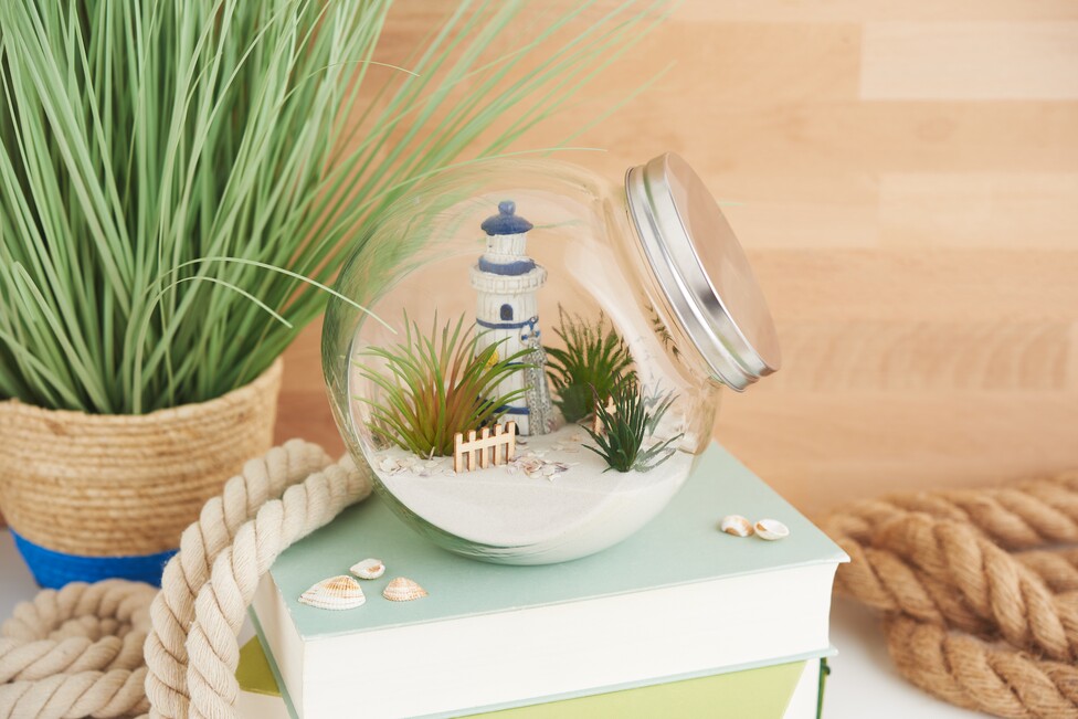 Are you ready to transform your home into a relaxed, maritime oasis? Find out here how you can create a decorative coastal landscape in a candy jar in no time at all. This combination of nature and the sea adds a breath of fresh air to any room and creates a calming ambience