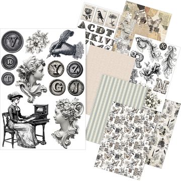 Discover the world of creativity with the Motif straw silk assortment "Typographic"! This set of 8 offers you a fascinating selection of motifs such as butterflies, ornaments, flowers, typewriters, people, keys, stamps and much more in stylish shades of beige, brown and black. The sheets are printed on one side in A5 format and are ideal for your craft projects.