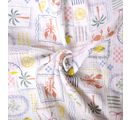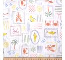 Discover summery lightness with our Muslin cotton fabric "Cagliari"! This motif fabric brings the vacation feeling straight to your home. With charming motifs such as crabs, fish, palm trees and lemons, it inspires creative projects that bring summer into your life.