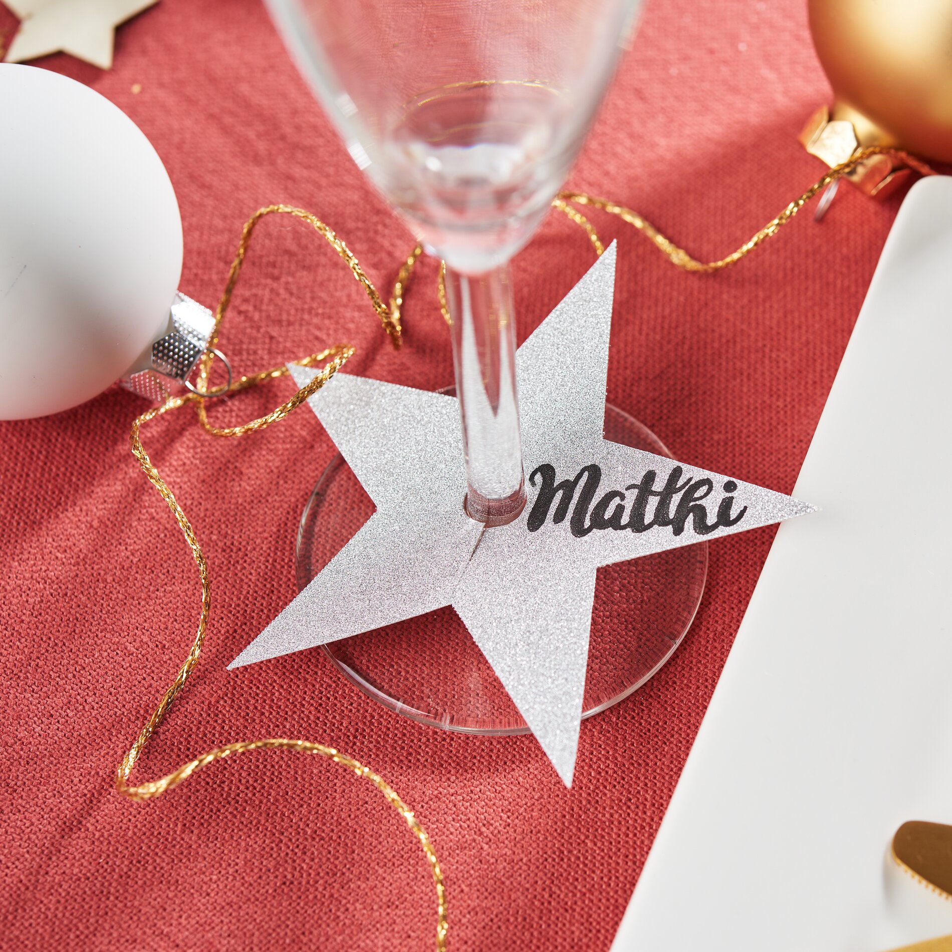 Use a permanent marker to personalise the cut-out stars with names or New Year's wishes. This allows each guest to recognise their personal glass immediately.