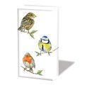 Are you looking for a special motif for your DIY projects? Then how about the Paper handkerchiefs "Birds" from Ambiente! The motif shows a cute sparrow, a blue tit and a robin on a white background and is perfect for spring and nature motifs. The print is on one side, the reverse remains white. The Paper handkerchiefs are available in the size 21 x 21 cm and come in a pack of 10.