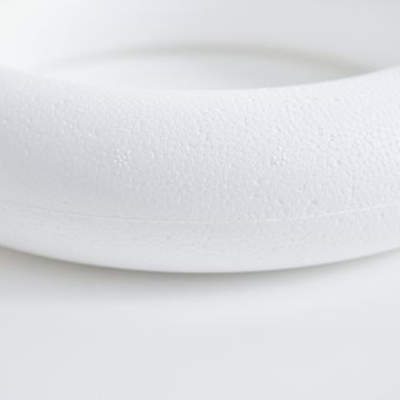 Whitehe Polystyrene ring with a diameter of about 17 cm. The inner dimension is approx. 10 cm.