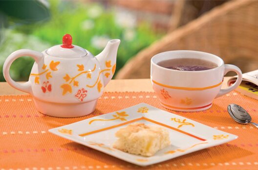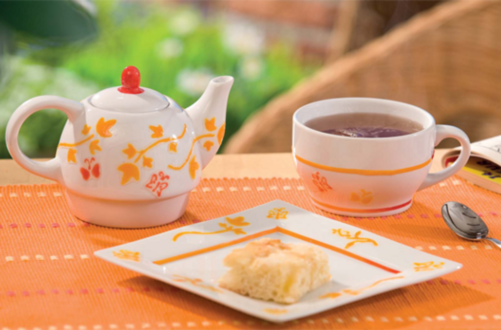 You can decorate this practical teapot with a matching cup Stencil with filigree ornaments, which are even dishwasher safe after being baked in the oven.