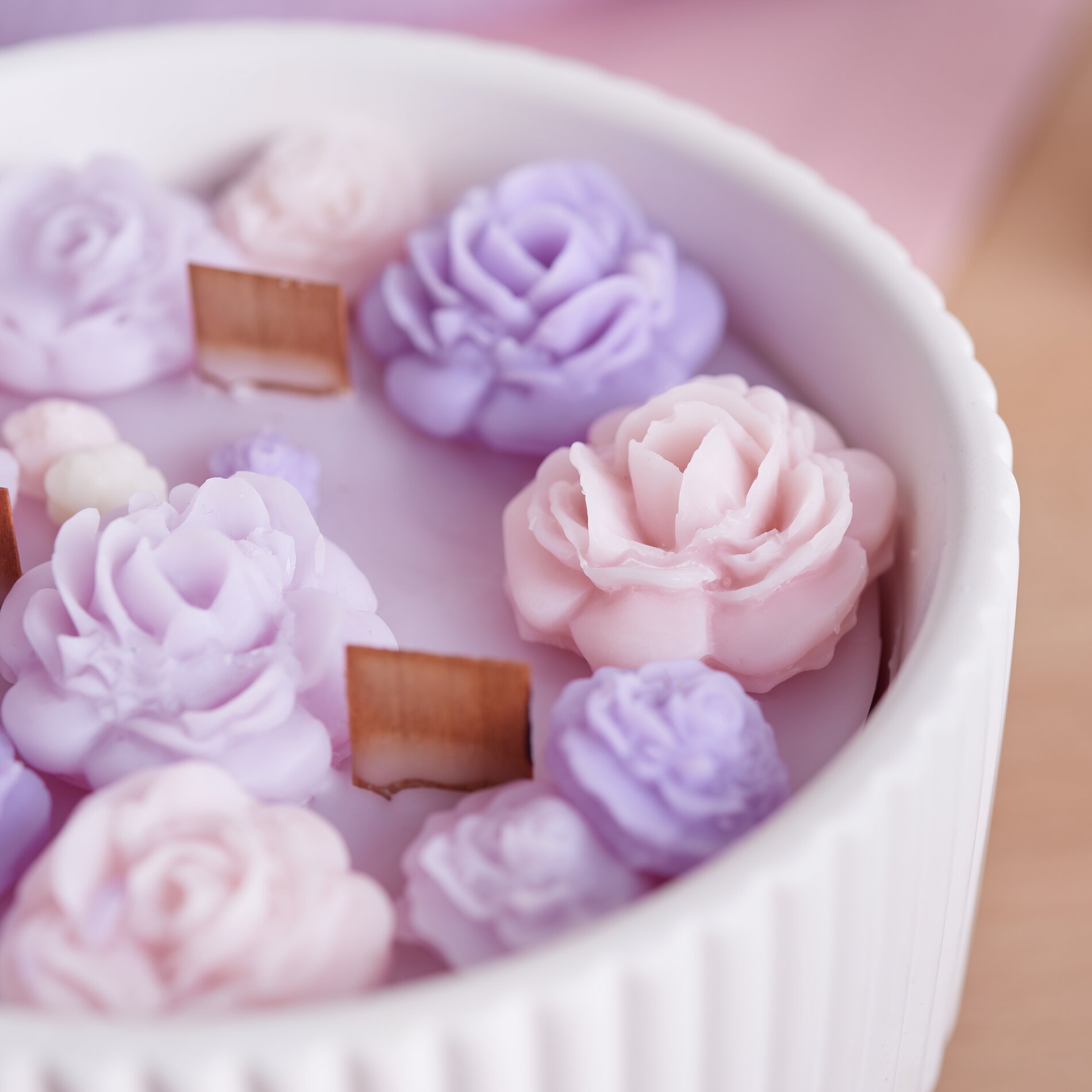 Rose petal candle in self-poured bowl