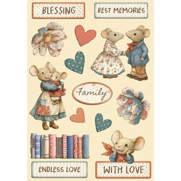 Immerse yourself in the creative world of the Rub On Transfer paper "Family"! This unique film will make your craft projects one of a kind. With a variety of designs including mice, gifts, toys, hot air balloons and more, you can bring your ideas to life. Application is child's play - simply use a scratch-off tool to transfer the desired motif onto smooth surfaces.