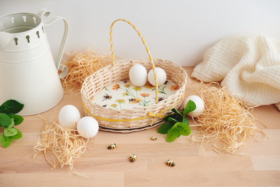 What could be nicer than combining the spring atmosphere and Easter fun in a handmade wicker basket? With these instructions, we'll show you how to create your own spring basket and decorate it with the filigree napkin technique . This individual basket is perfect as an Easter nest to present colorful eggs or small surprises. Let's get creative and add a personal and seasonal touch to your Easter table!