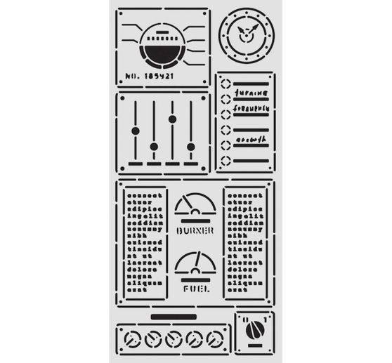 Discover new creative horizons with the Stencil "A New Beginning - Control Panel"! This versatile stencil, inspired by classic control panels with sliders, clocks and level indicators, invites you to let your imagination run wild. Measuring 12 x 25 cm, it is perfect for a wide variety of projects.
