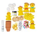 The complete set contains the material needed to create 5 cute chicks. In addition, some hot glue and a brush are needed. The enclosed instructions help you step-by-step and with numerous pictures, very easy to make your chicks. The finished figures have a height of about 10 cm.