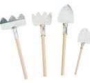 These tools are perfect for taking your creative projects to the next level. With a large shovel, a small shovel, a spade fork and a rake made of silver metal and wooden handles, you'll be perfectly equipped to create miniature landscapes, dioramas or doll's houses. Imagine how you can create tiny plantings with the small shovel or filigree structures in the sand with the rake.