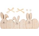 Our set contains five pieces made of raffia, plywood and MDF wood with a veneered front, which you can paint, stick on or decorate to your heart's content. With a width of 1.7 cm, a height of 10 cm and a length of 23 cm, this one-sided decorated parade is ideal for decorating windowsills, shelves or tables. Two raffia bows and two flowers to stick on give the drawn bunny faces that certain something.