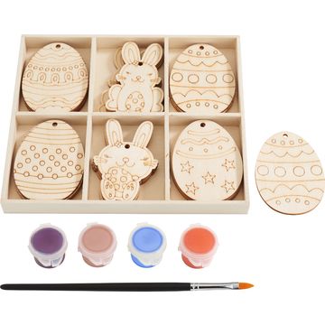 VBS Wooden motifs "Eggs" with paint and brush