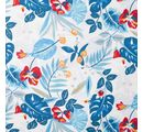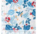 Ontdek de exotische schoonheid van de Katoenen poplin stof "Tropical Blue" en laat je inspireren door de levendige tropische bladeren en bloemen in blauw, lichtblauw en rood! Deze motiefstof op een witte achtergrond brengt een frisse wind door je naaiprojecten en is perfect voor luchtige zomerkleding en accessoires.
