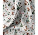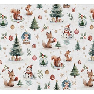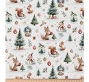 Dompel jezelf onder in de magische wereld van de winter met onze Katoenen stof "Snowys Winter magic". Dit prachtige motief, dat dennenbomen, sneeuwpoppen, vossen en eekhoorns combineert op een heldere achtergrond, brengt de feestelijke gloed bij je thuis. De hoogwaardige digitale print geeft de stof een levendige kleurenpracht en gedetailleerde illustraties die je creatieve projecten tot leven brengen.