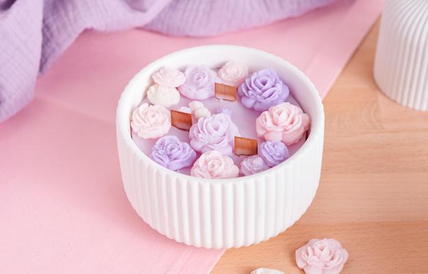 3. Verwarm tenslotte de waskorrels tot het smeltpunt van ongeveer 60 °C en voeg zo nodig de kleurstofkorrels en de geurolie toe. Zo blijft het ontwerp van de kaars echt heel individueel.