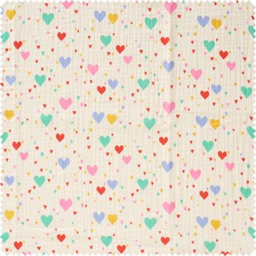 Breng je creatieve projecten tot leven met de Polyester stof "Tiamo", die niet alleen praktisch maar ook stijlvol is dankzij de PU-coating. Je zult dol zijn op de hartjes in verschillende kleuren en maten die deze stof een speciale look geven.