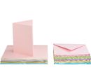Deze geweldige voordeelverpakking van 50 kaarten en bijpassende enveloppen biedt je de perfecte basis voor al je ideeën voor wenskaarten. De vijf betoverende kleuren - roze, groen, paars, geel en blauw - brengen een zacht kleurenpalet in je knutselwereld. Elke kaart in het praktische DIN-A6 formaat meet 10,5 x 15 cm en heeft een gramsgewicht van 220 g/m², ideaal voor een stabiele en hoogwaardige afwerking. De bijpassende enveloppen met een gramsgewicht van 110 g/m² maken de set compleet.