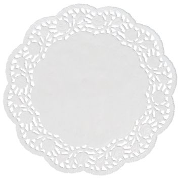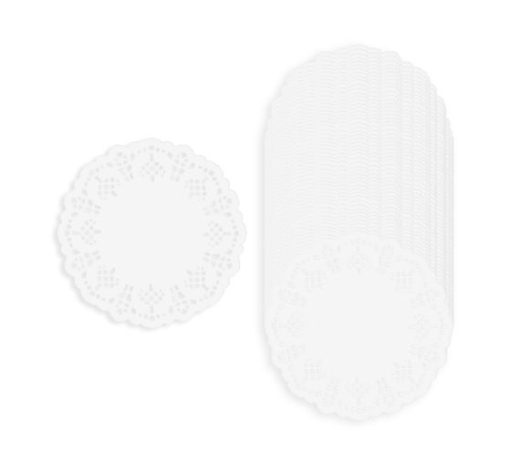 De kleine doilies hebben een filigrane rozenrand en geven een romantische uitstraling.