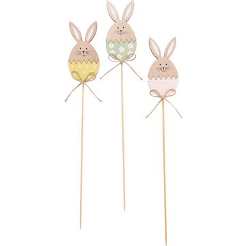 Je ontvangt drie liefdevol ontworpen konijntjes die een vleugje lentemagie toevoegen aan elke kamer met hun zwarte draadoren en bloemige buikjes in pastelpaars, pastelroze en pastelgroen. De hangers zijn gemaakt van een harmonieuze combinatie van MDF-hout, multiplex, jute en draad en zijn aan één kant gedecoreerd, wat ze een speciale diepte geeft.
