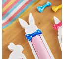 Met onze gietvorm kun je tot vier individuele chocoladereephouders maken. Elke vorm meet ongeveer 12,5 x 3 cm en is ideaal voor chocoladerepen tot 8 x 2 cm. Dankzij het flexibele siliconenmateriaal is het losmaken van de vormen kinderspel. Gebruik creatief gietslip of giethars en ontwerp je konijnenkoppen naar wens met kleuren, pasta's of sprays.